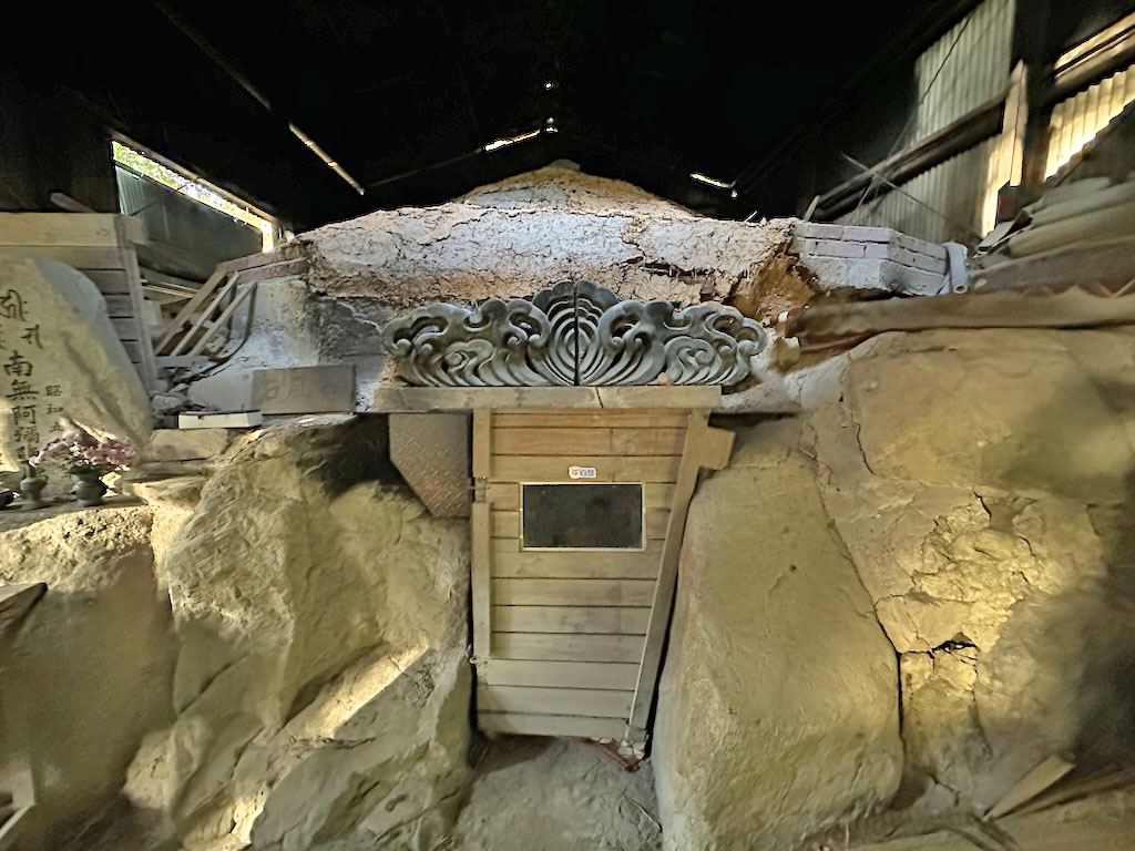 旧鉄湯釜と旧鉄湯舟(残欠)とともに
