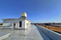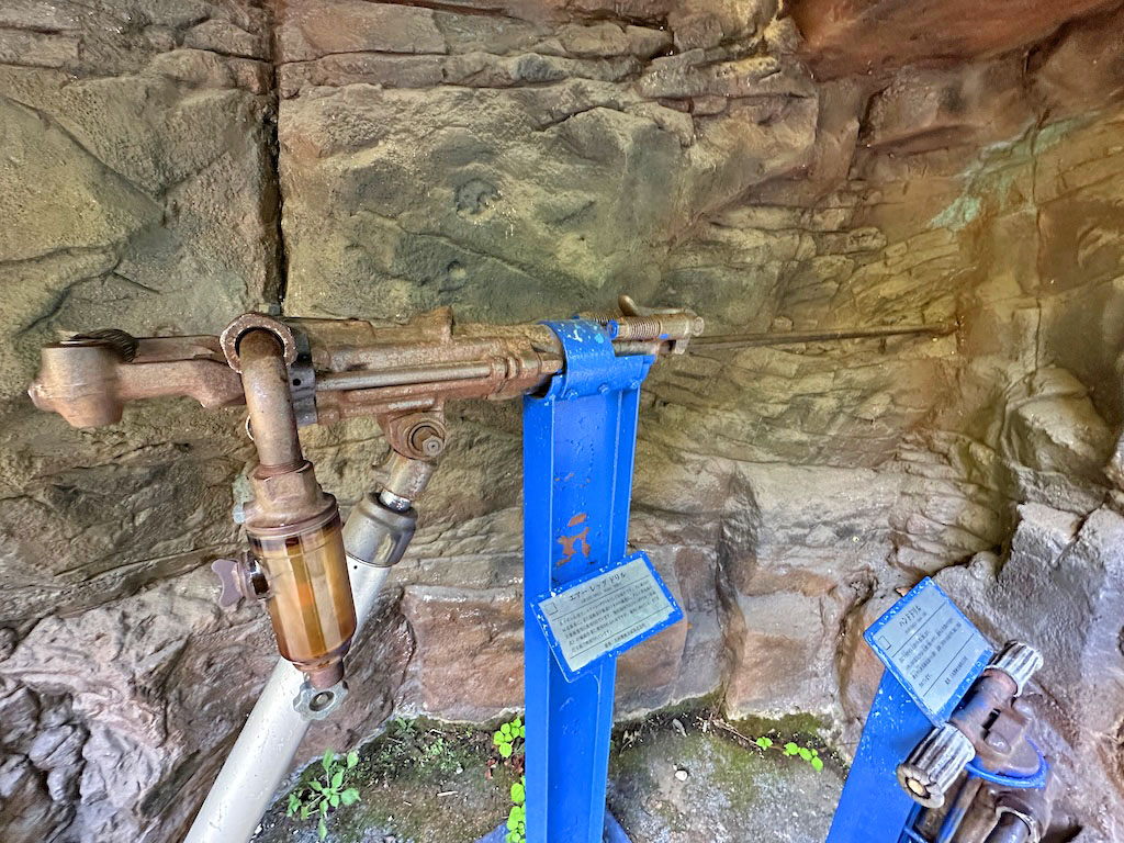岩盤に爆薬を挿入する丸い穴をあけます。