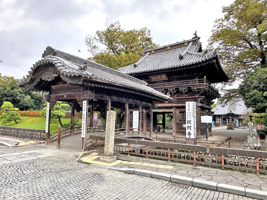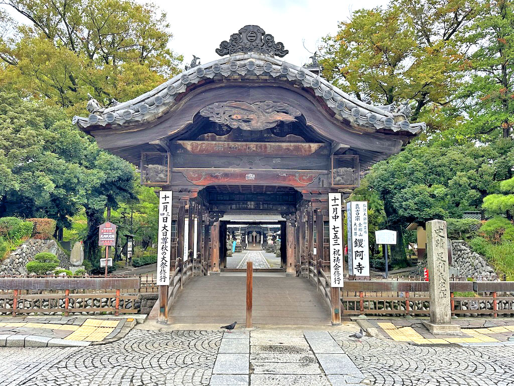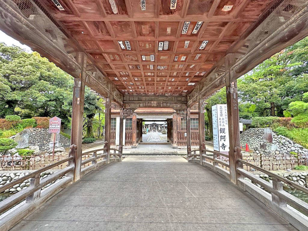 反橋と山門とその奥の本堂、