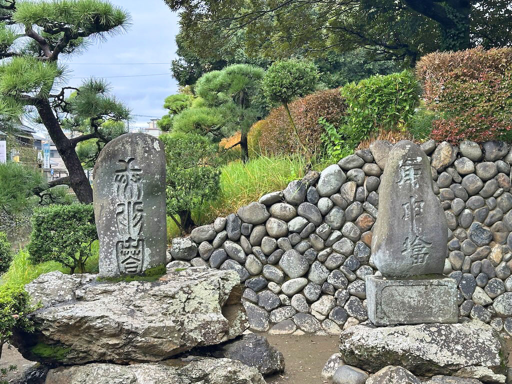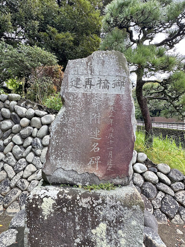 反橋再建時の「寄附連名碑」。