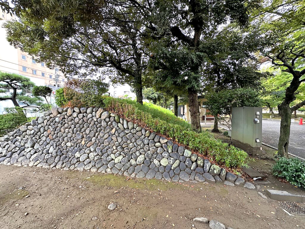 土塁断面の石垣。