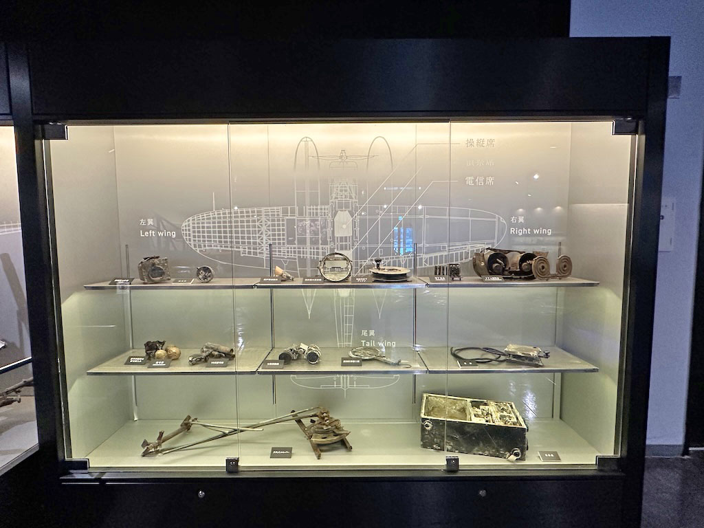 機体から発見されたものを展示。