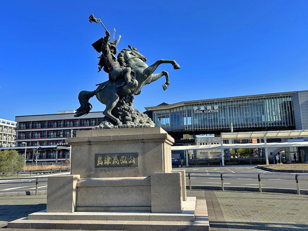 島津義弘公の銅像は建っています。