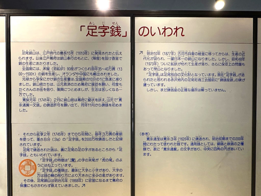 足尾で造られた足字銭など。
