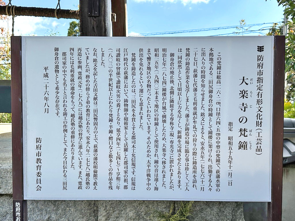 三田尻御舟倉の時鐘として鐘楼に架けられ、