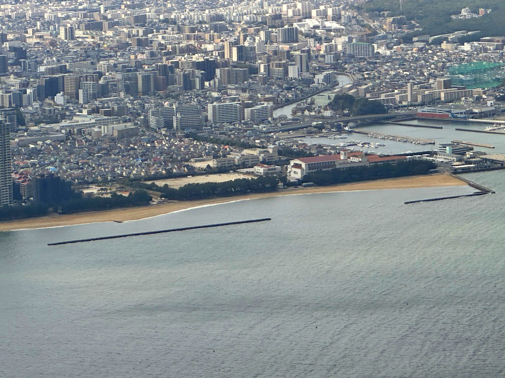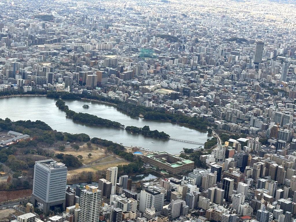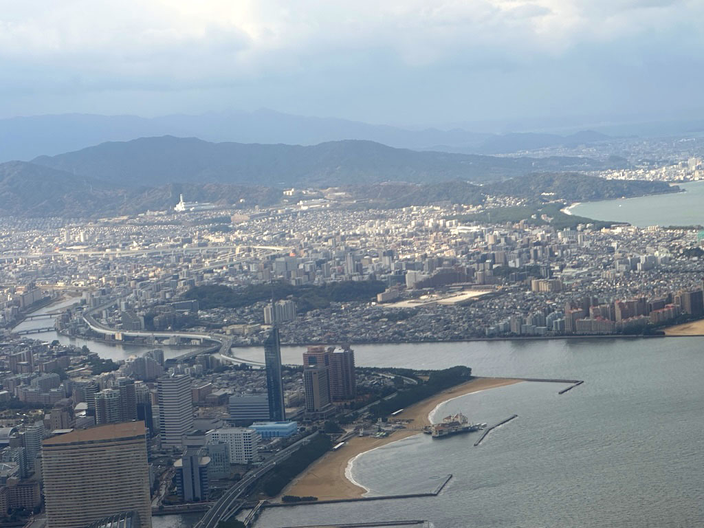 朝便ならではの福岡市の俯瞰、