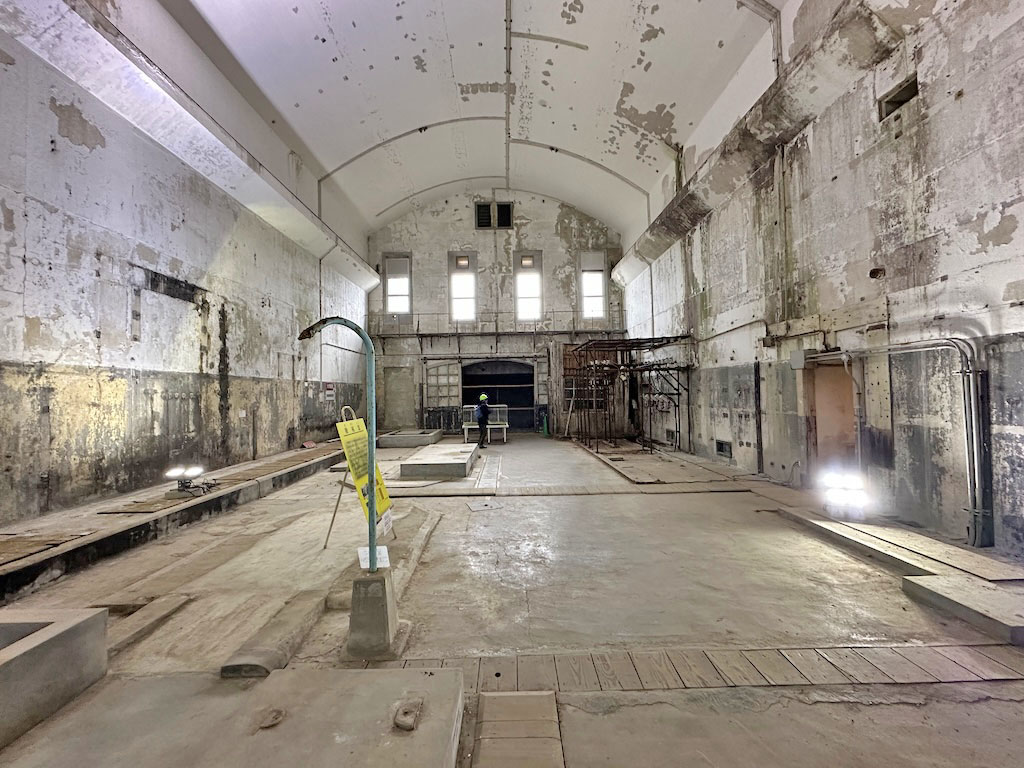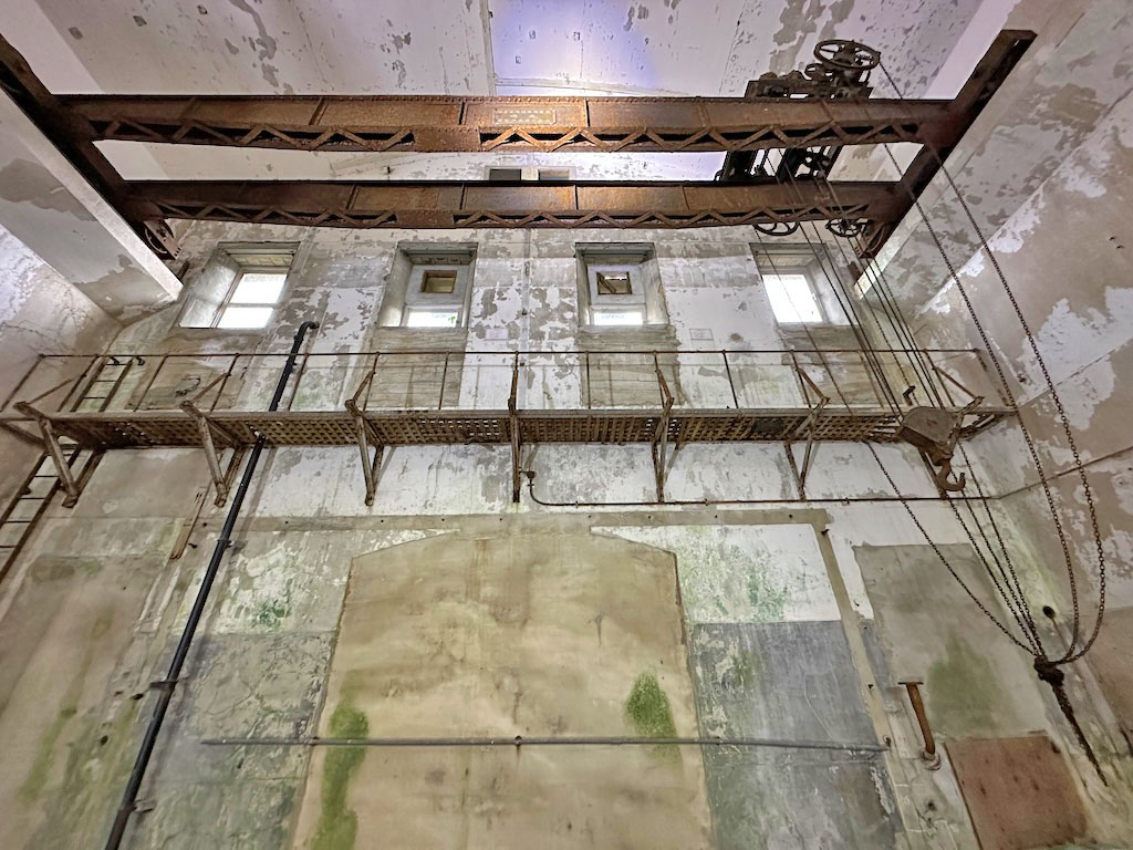 1921年製の天井走行クレーンが現存し、