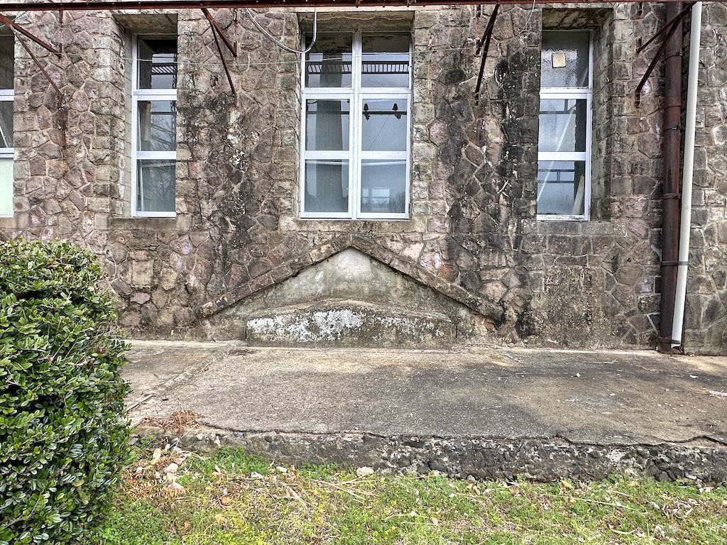 右側の出入口の屋根部分の痕跡。