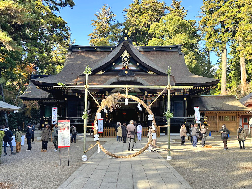 茅の輪くぐりと拝殿。