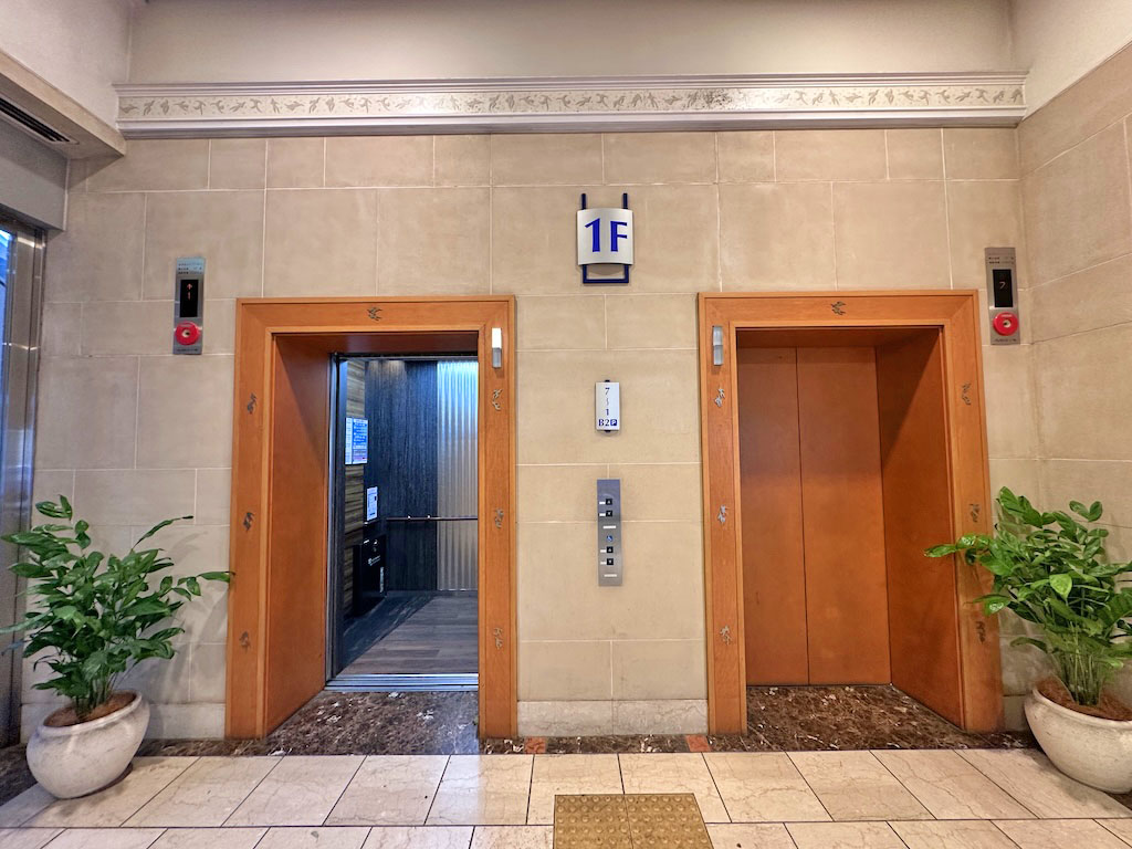 ホテル1階からフロント階へ。