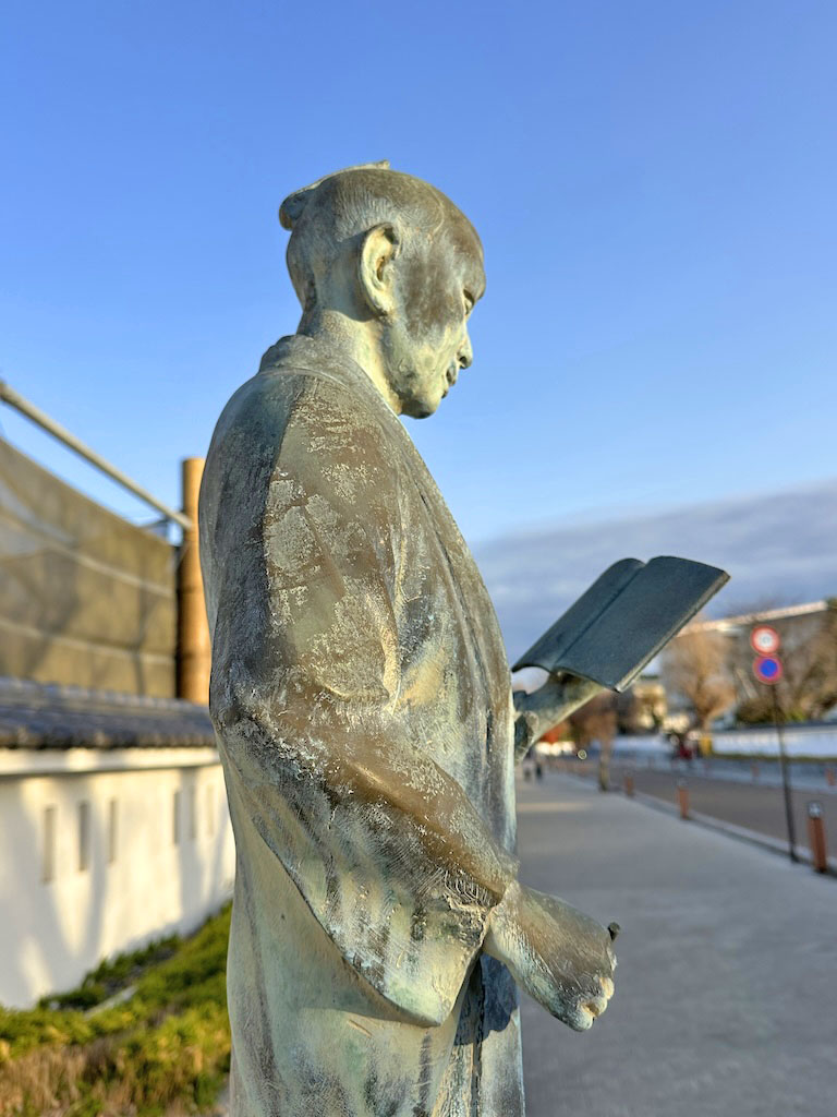 安積澹泊の銅像が見えています。