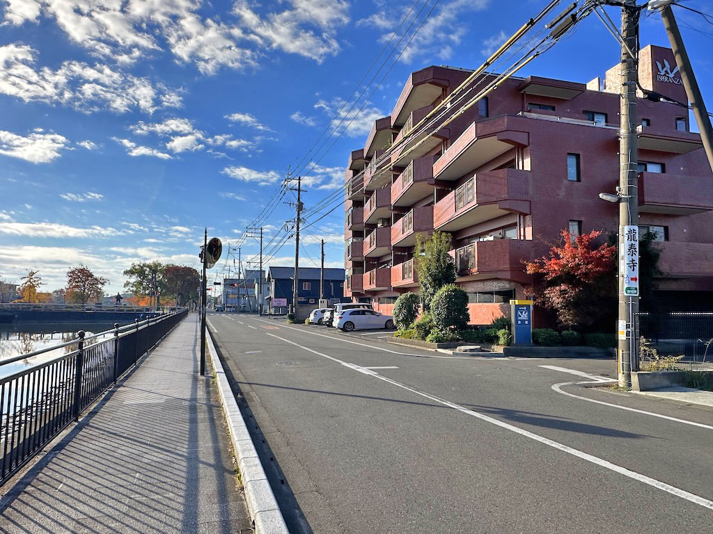 堀沿いの道からは、