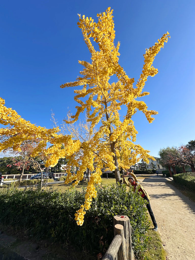 銅像近くで発見した銀杏の木。