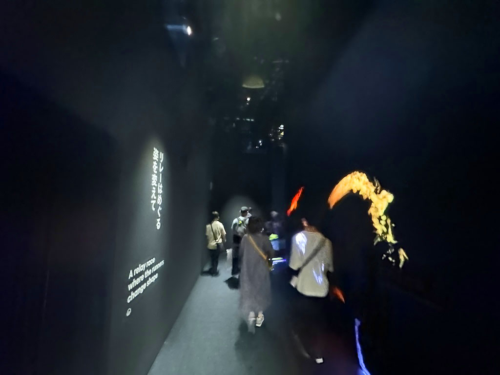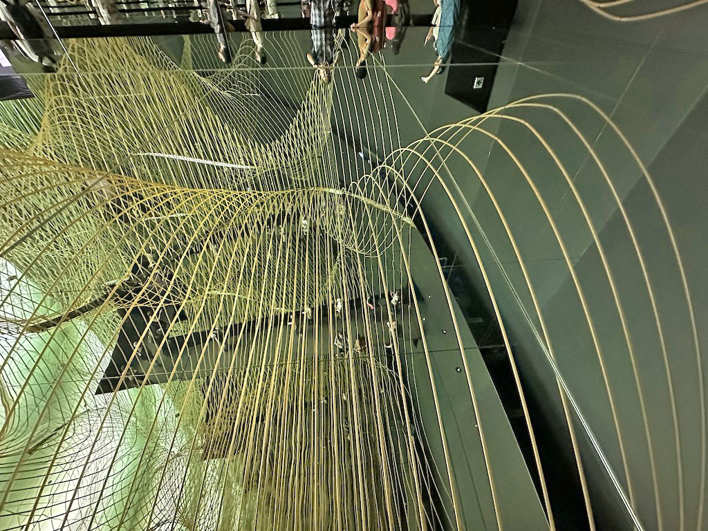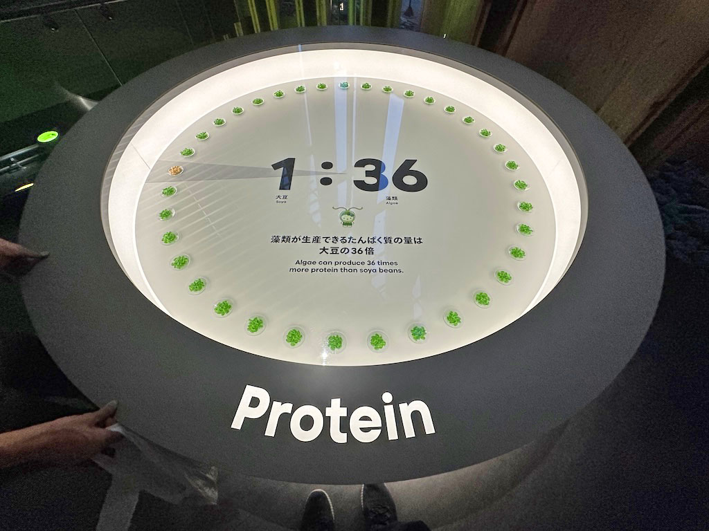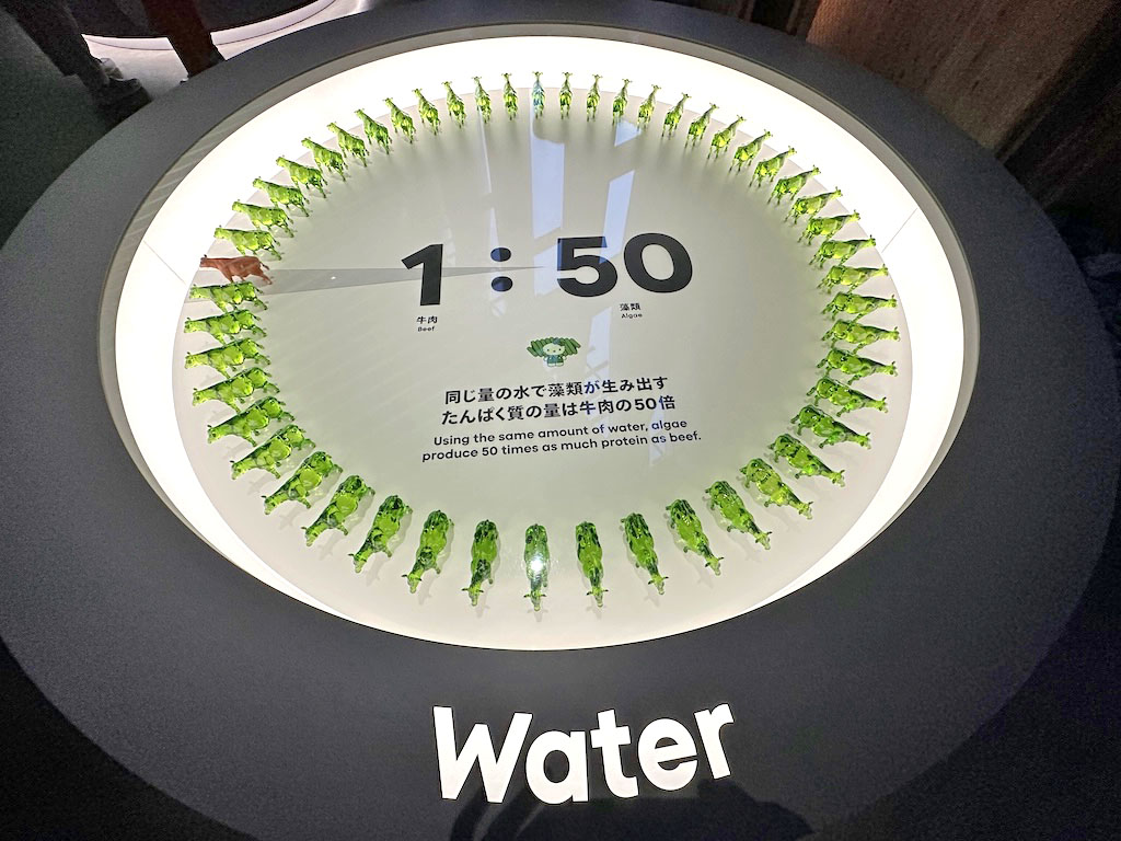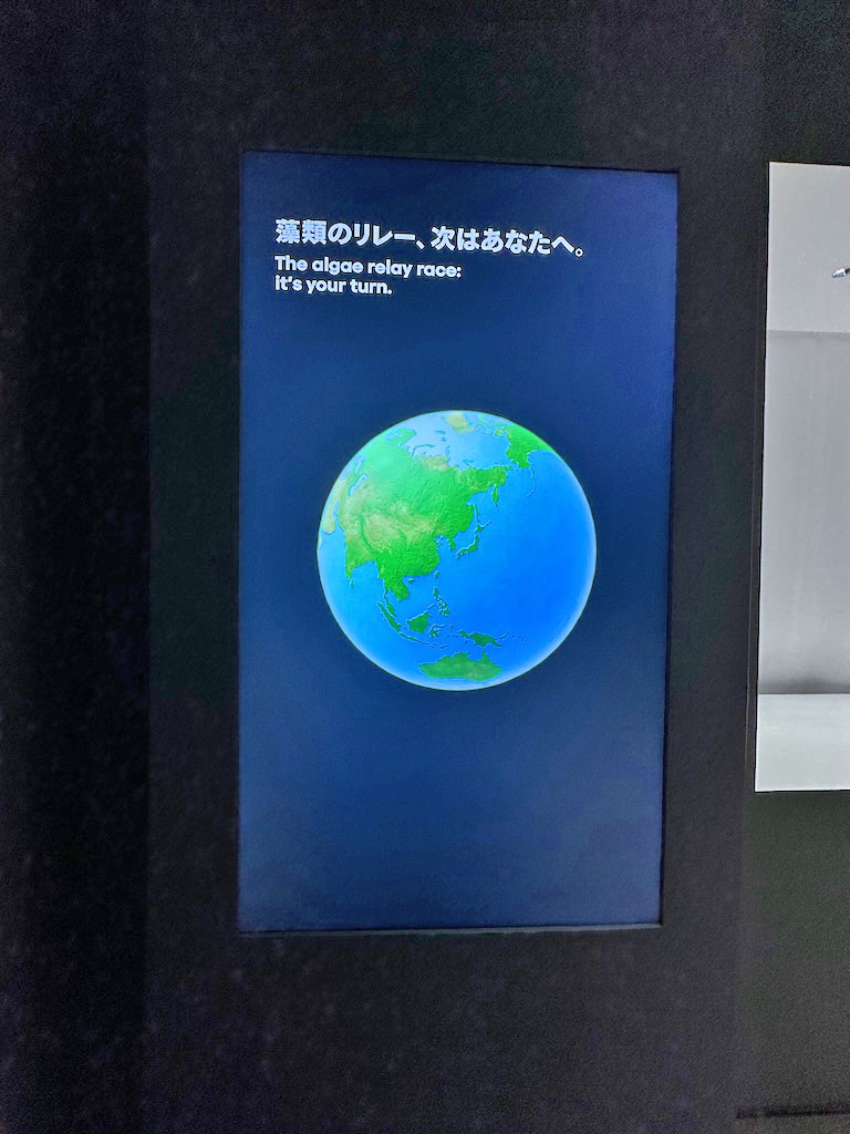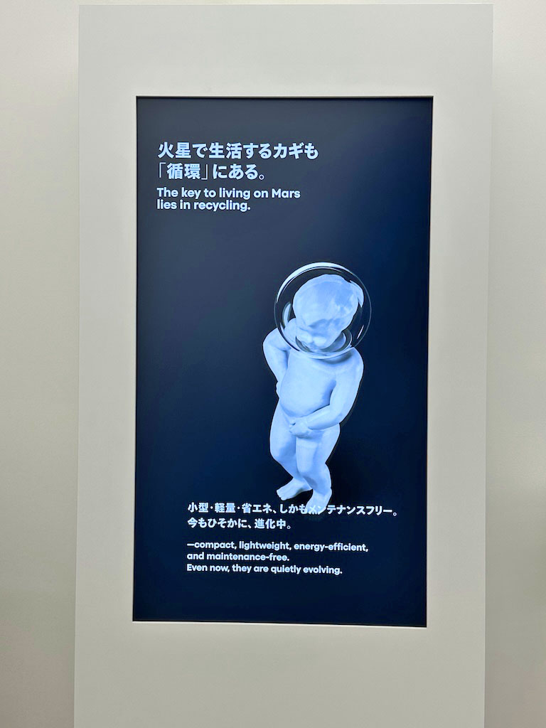 「世界最大級の火星の石」の展示に並ぶ妻。