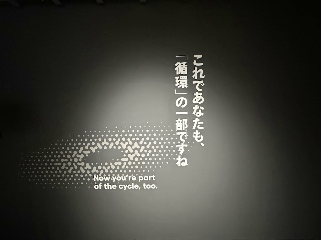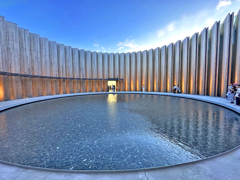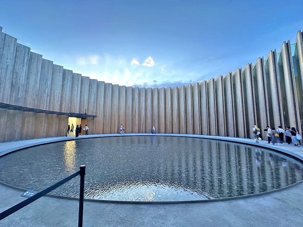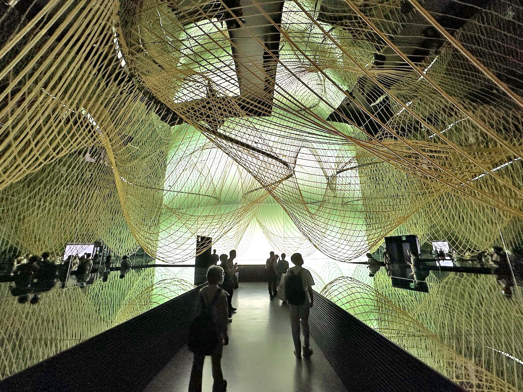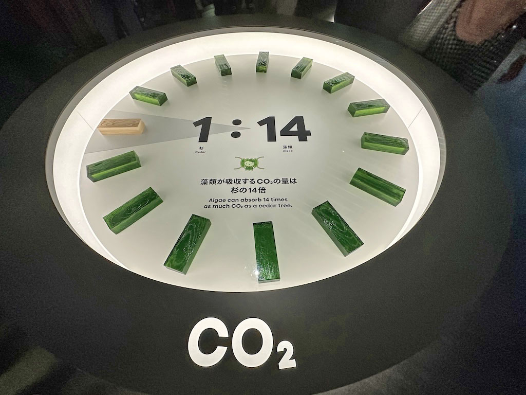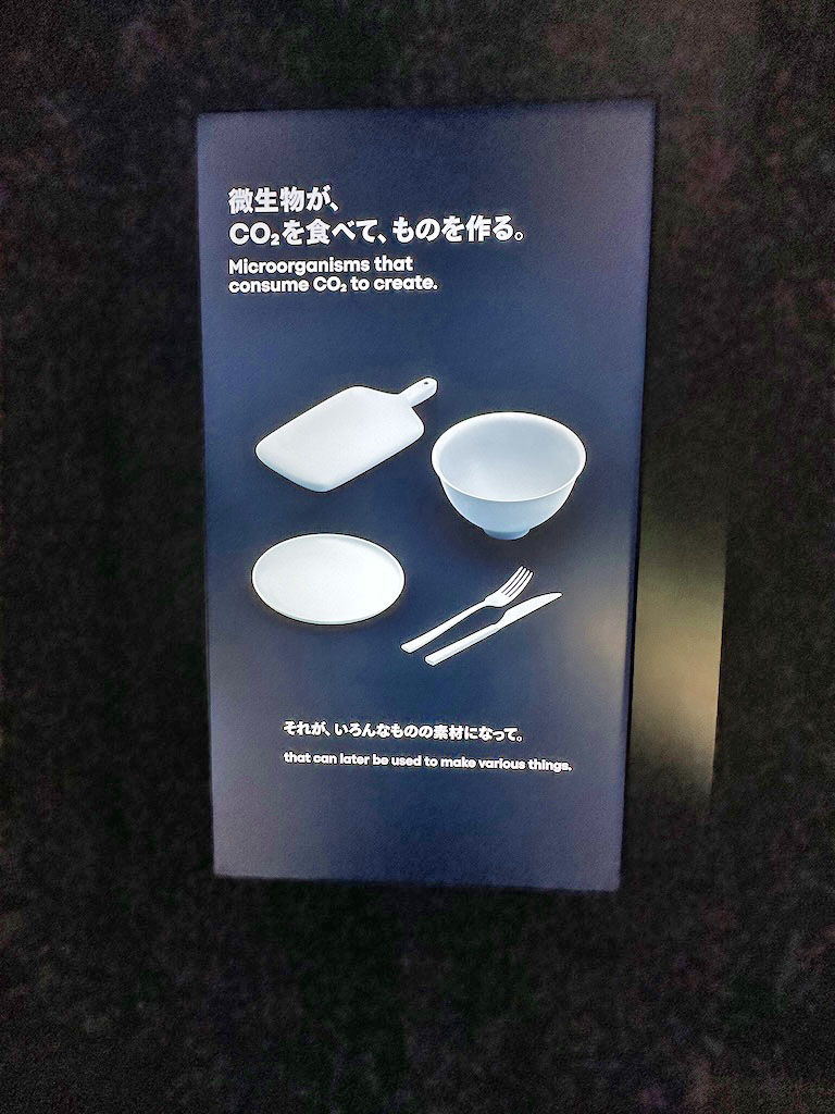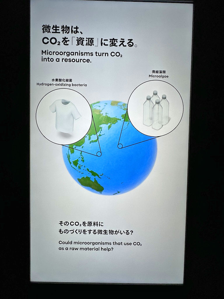 「世界最大級の火星の石」の展示に並ぶ妻。