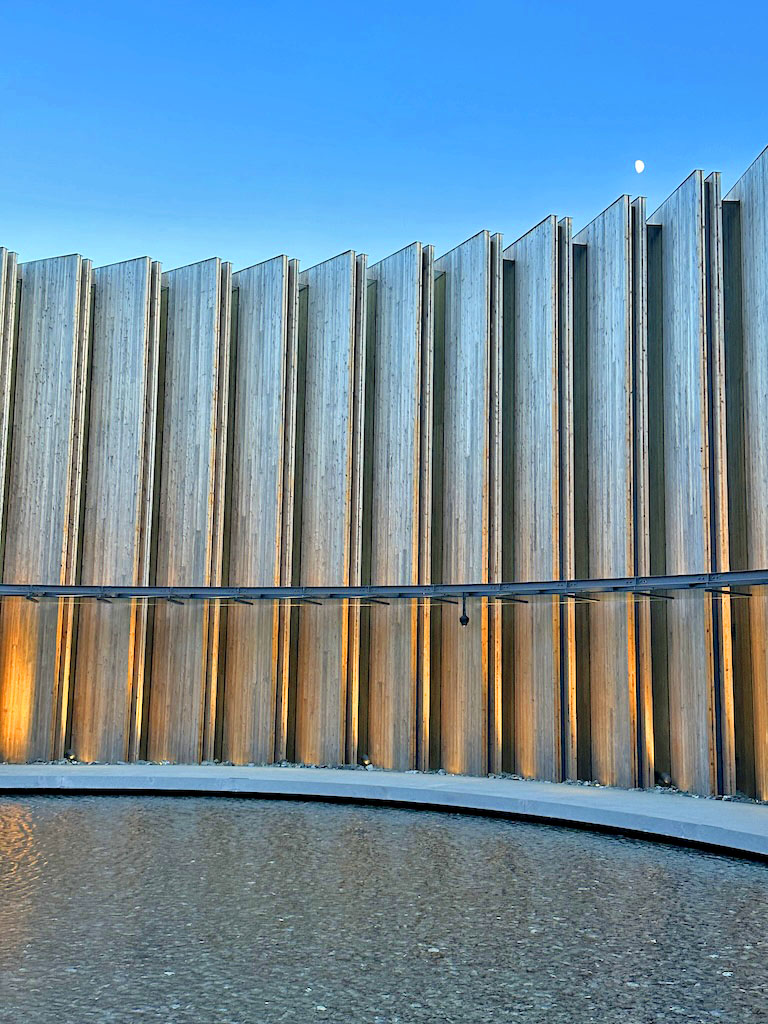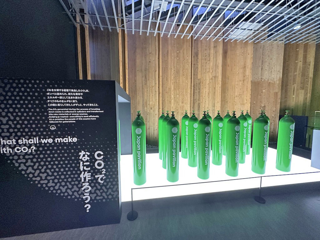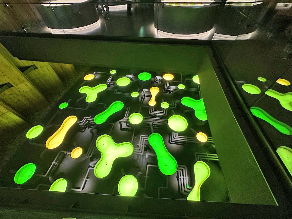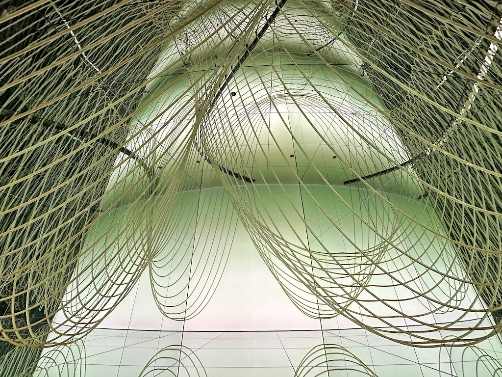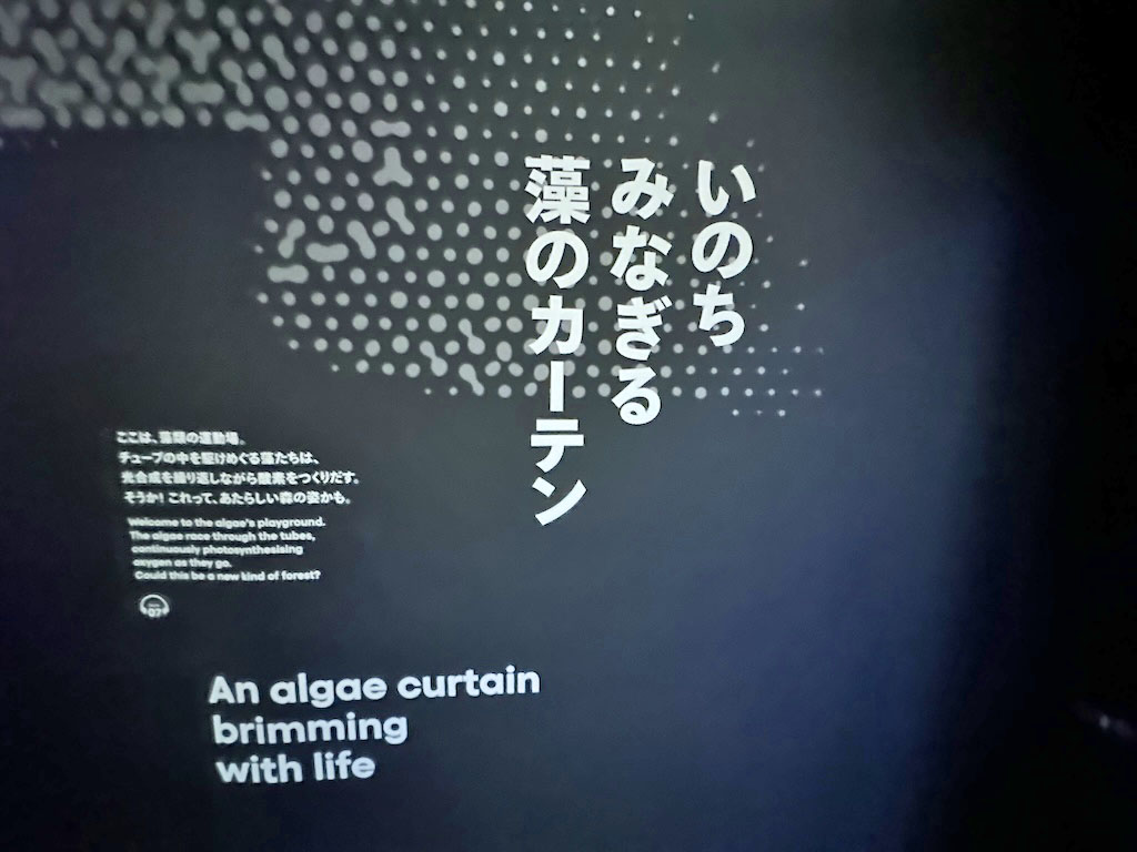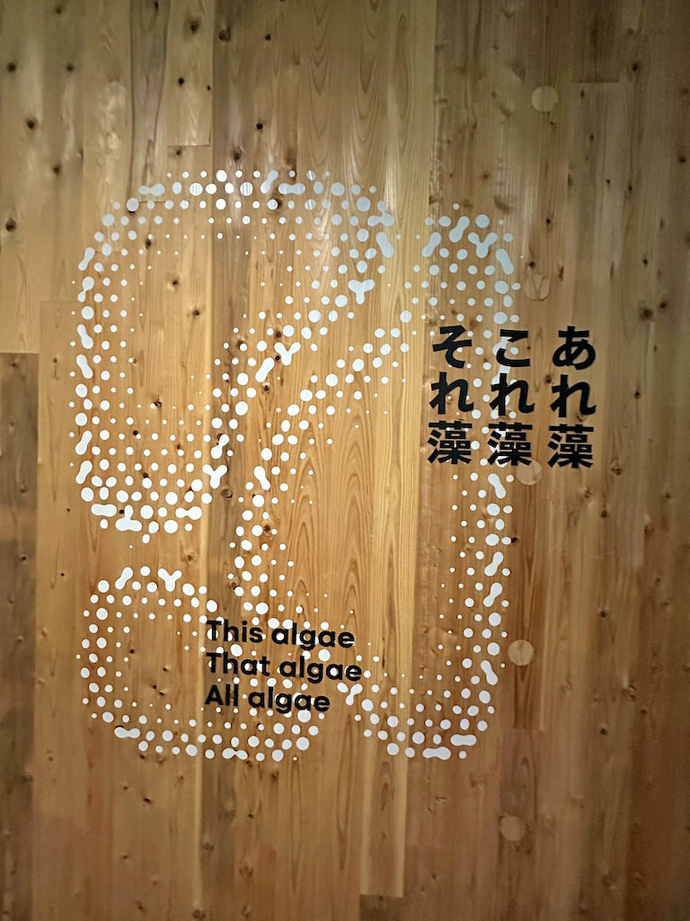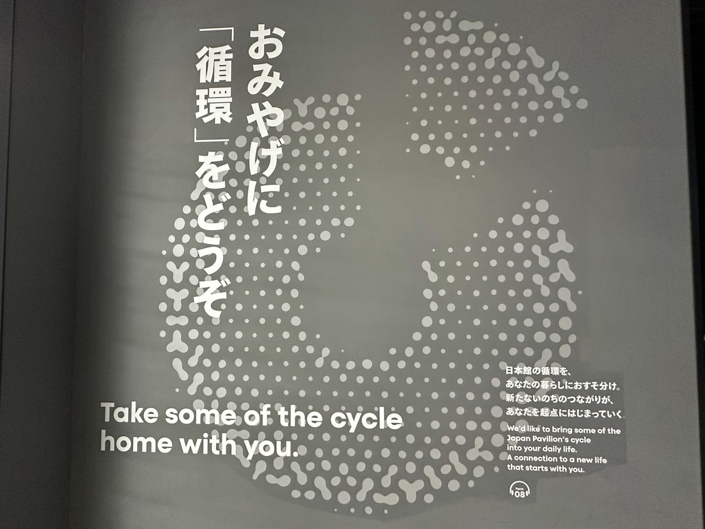 「世界最大級の火星の石」の展示に並ぶ妻。