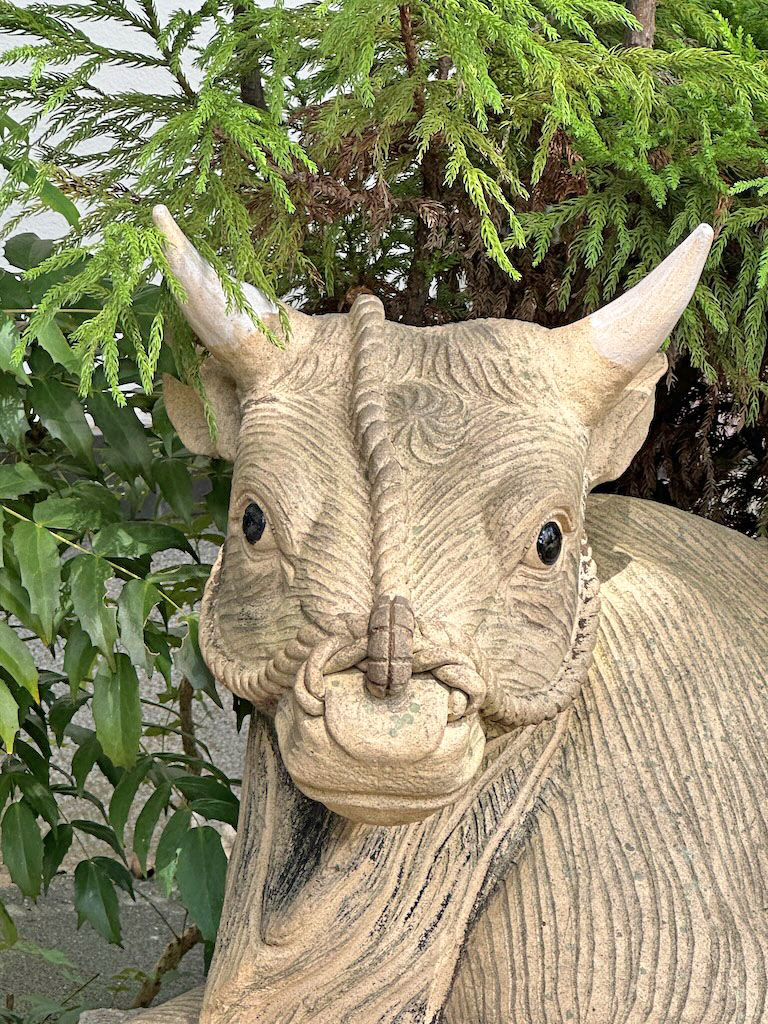 宝物館横の牛像。