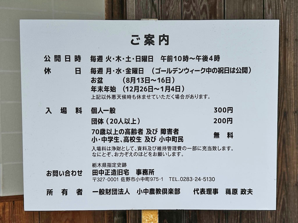 田中正造旧宅の営業日は、