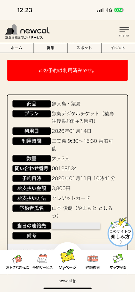 猿島航路の「使用済み」画面を見せると、